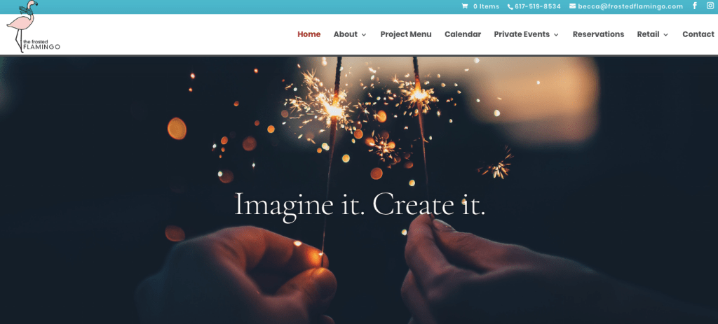 Becca came to us with a dream of offering a memorable artistic experience through a mobile art studio. She imagined people gathering for private events like a bachelorette or birthday party, a corporate gathering or even a community event and being able to create something that was beautiful, fun, or useful. So she founded The Frosted Flamingo and asked us to help her with the web design.