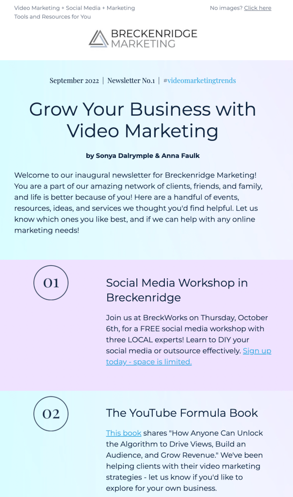 We believe the answer is in a regular newsletter. And we love to help you focus on the “letter” part more than the “news.” (thanks, Ann Handley!) The newsletter becomes a focal point to drive all other content creation and activity. It sounds simple, but there is a great benefit that comes from this consistent and creative commitment.